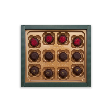 Артикул: 57384Молочный трюфель с малиной и мармеладными каплями в темном шоколаде