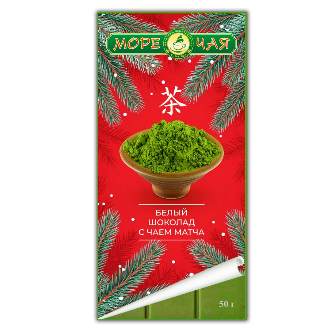 Шоколад белый с чаем Матча - "Море Чая", новогодняя, Россия, 50 гр.