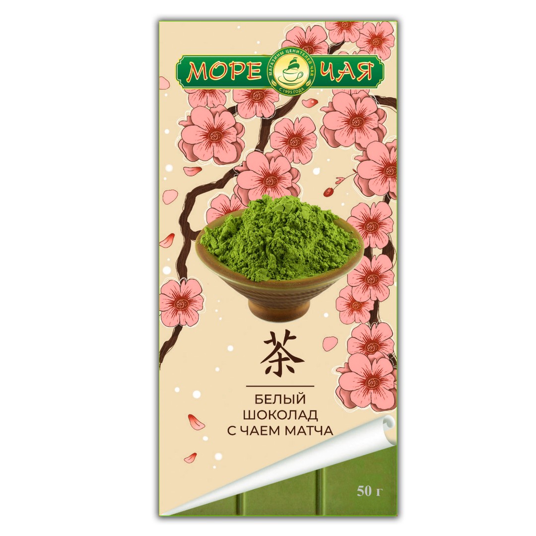 Шоколад белый с чаем Матча - "Море Чая", картон, Россия, 50 гр.