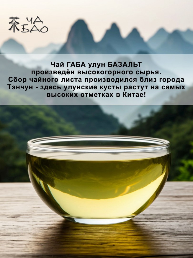 Чай ГАБА улун БАЗАЛЬТ произведённый высокогорного сырья. Сбор чайного листа производился близ города Тэнчун - здесь улунские кусты растут на самых высоких отметках в Китае!