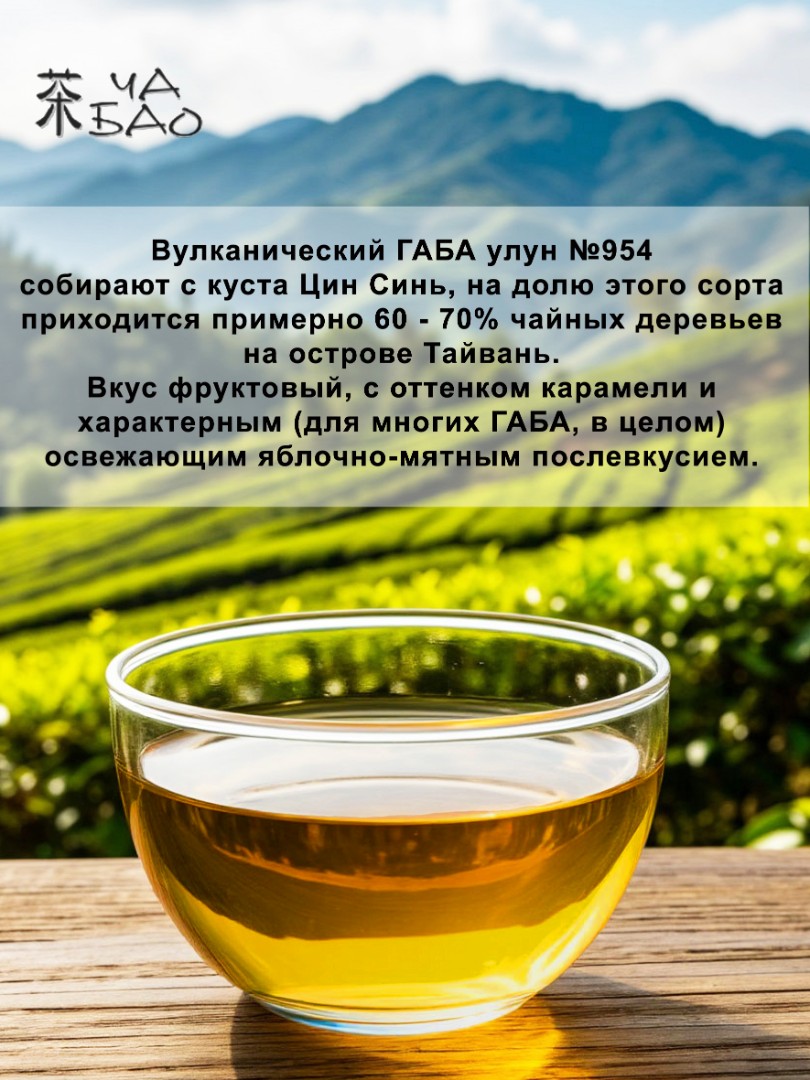 Чайное сырьё Вулканическиого ГАБА улуна №954 собирают с того же самого сорта куста, который культивируется и на острове Тайвань: Цин Синь (на долю которого приходится примерно 60 - 70% чайных деревьев на Тайвань).