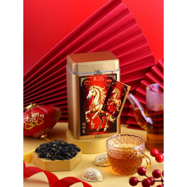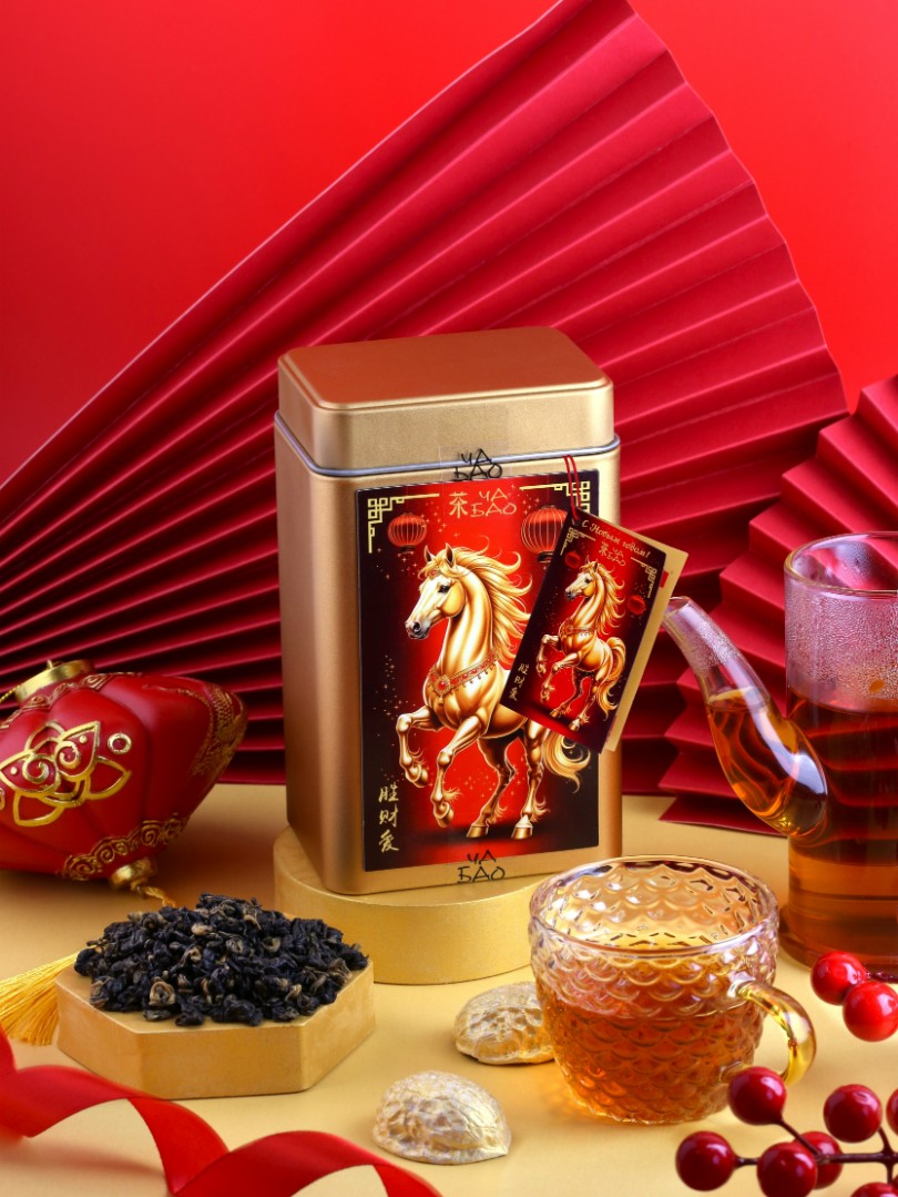 Этот чай, произведён и упакован в Китае, в изысканную жестяную баночку с магнитом, украшенную символом наступающего Нового Года — Лошадью. Такой подарок станет не только источником наслаждения, но и воплощением праздника и уюта.