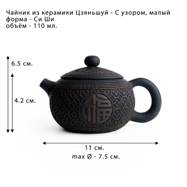 Чайник из керамики Цзяньшуй - Си Ши с узором, маленький, 110 мл.