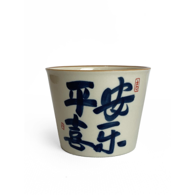 Артикул: 57186Это не просто чашка, на её поверхности изображены иероглифы «平安喜乐» (píng ān xǐ lè), что в переводе с китайского означает «мир и радость» или «мира и радости».