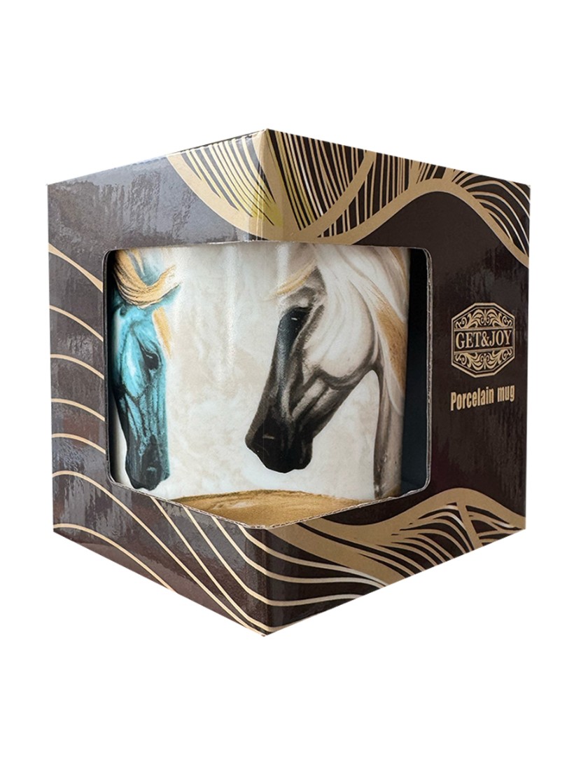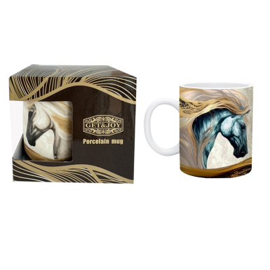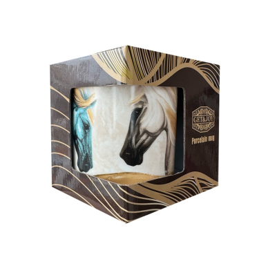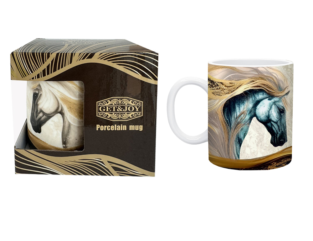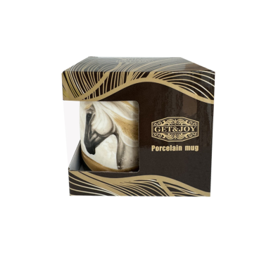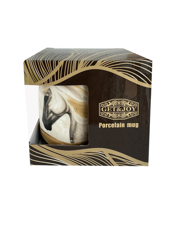Фарфоровая кружка объемом 320 мл оформлена в стильной индивидуальной упаковке с окошком.