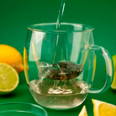 Кружка изготовлена из жаропрочного боросиликатного стекла, что обеспечивает устойчивость к высоким температурам и механическим повреждениям. Это гарантирует долгий срок службы и сохранение первоначального вида даже при ежедневном использовании.