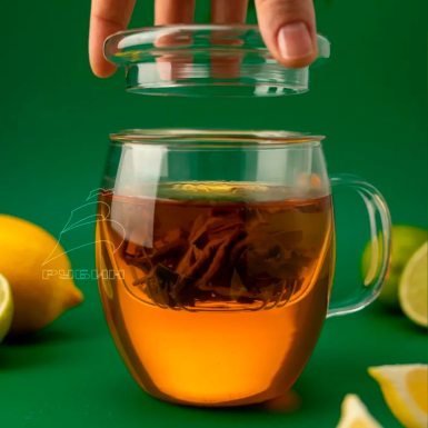 В комплекте с кружкой идут крышка и ситечко, что позволяет наслаждаться процессом заваривания чая на рабочем месте или дома.