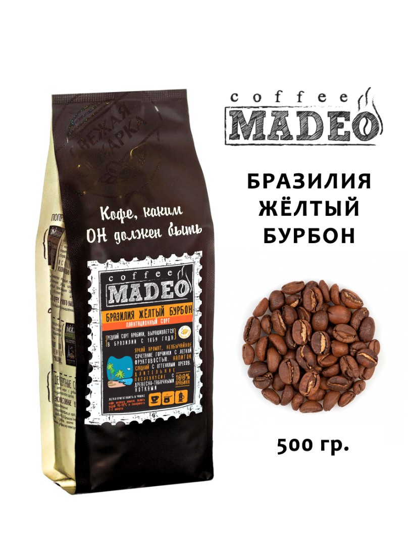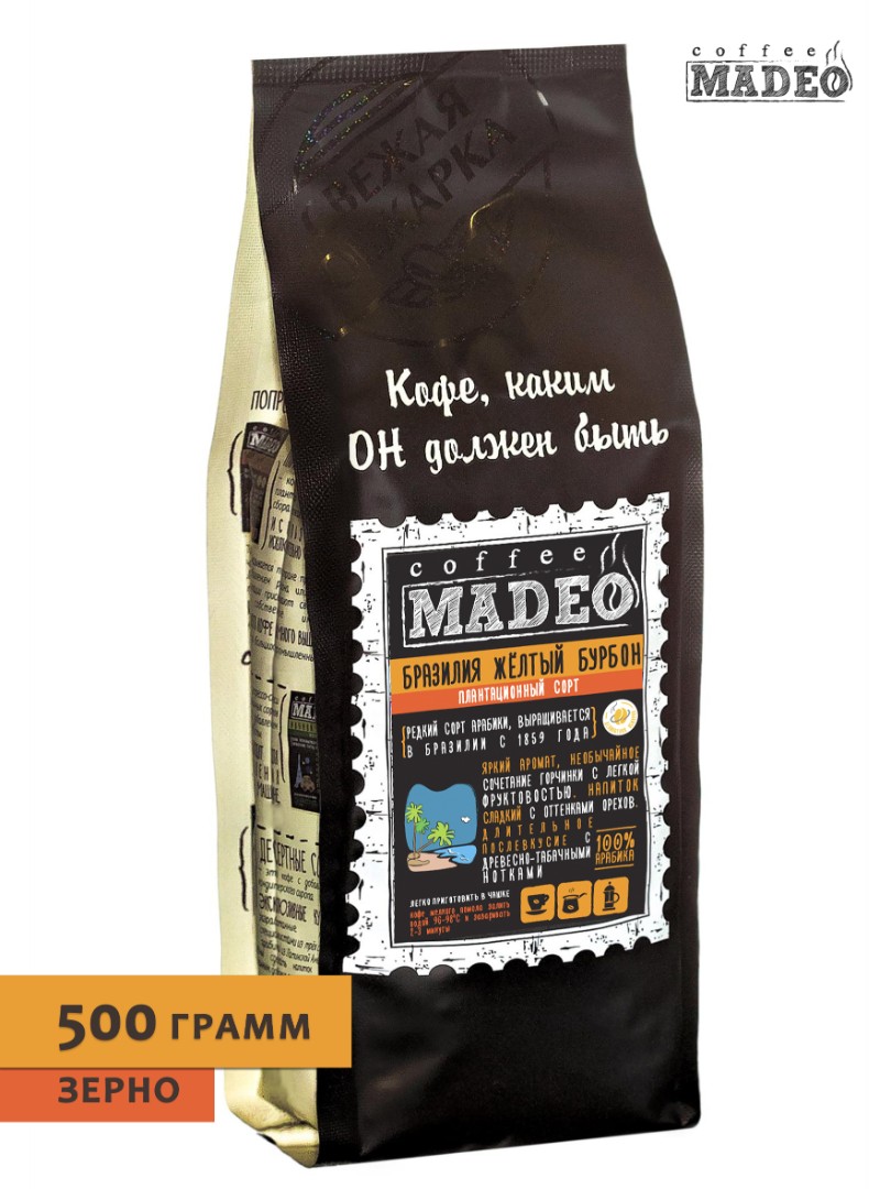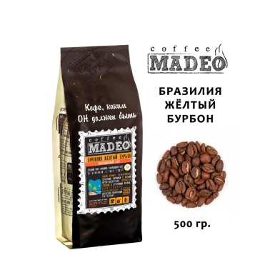 Кофе ТМ "Мадео" - Бразилия Желтый Бурбон, арабика, в зернах, 500 гр.