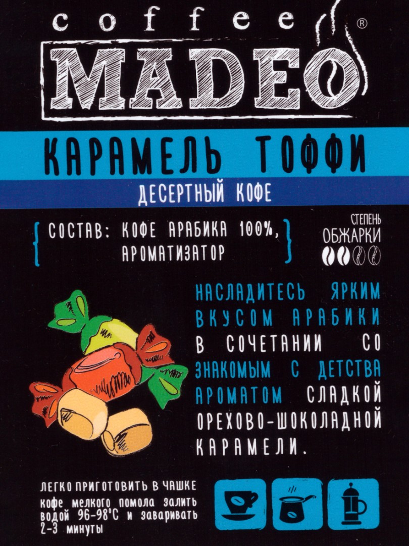 Кофе ТМ "Мадео" - Карамель Тоффи, 100% арабика, в зернах, 500 гр.