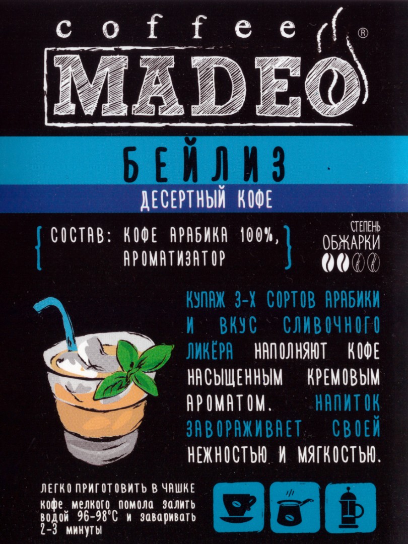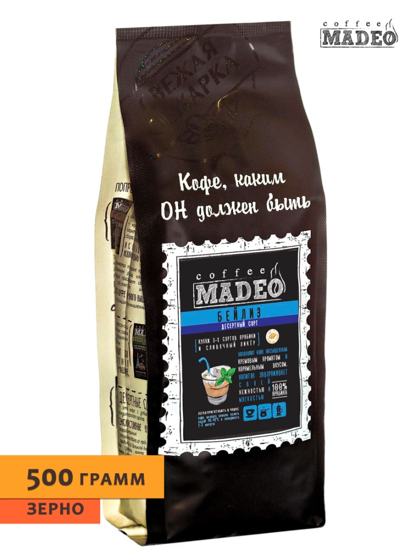 Кофе ТМ "Мадео" - Бейлиз, 100% арабика, в зернах, 500 гр.