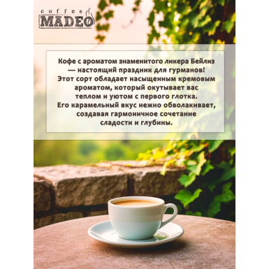 Представьте себе момент, когда вы берёте в руки свою любимую кружку, и вас встречает восхитительный аромат, напоминающий о самых приятных моментах жизни. Это не просто кофе — это искусство, воплощённое в каждой чашке. Встречайте кофе "Мадео" с ароматом Бейлиз — напиток, который создан для тех, кто ценит роскошь, утончённость и незабываемые вкусовые ощущения.