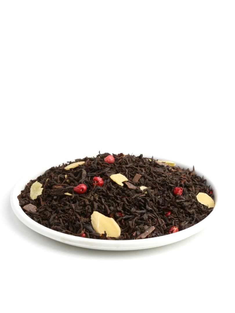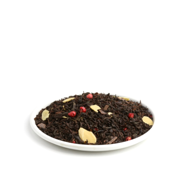 - Состав: черный листовой чай, слайсы миндаля , кусочки шоколада, красный перец, ароматизатор натуральный