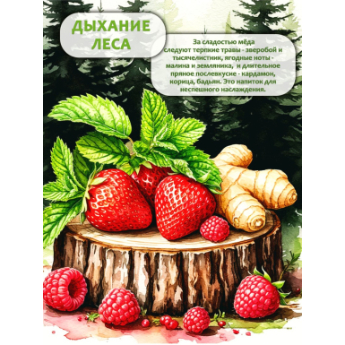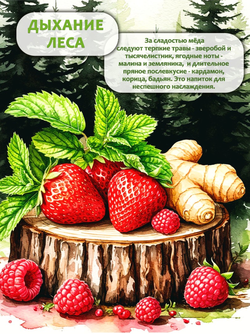 Глубина вкуса: За сладостью мёда следуют терпкие травы (зверобой, тысячелистник), ягодные ноты (малина, земляника) и длительное пряное послевкусие (кардамон, корица, бадьян). Это напиток для неспешного наслаждения.