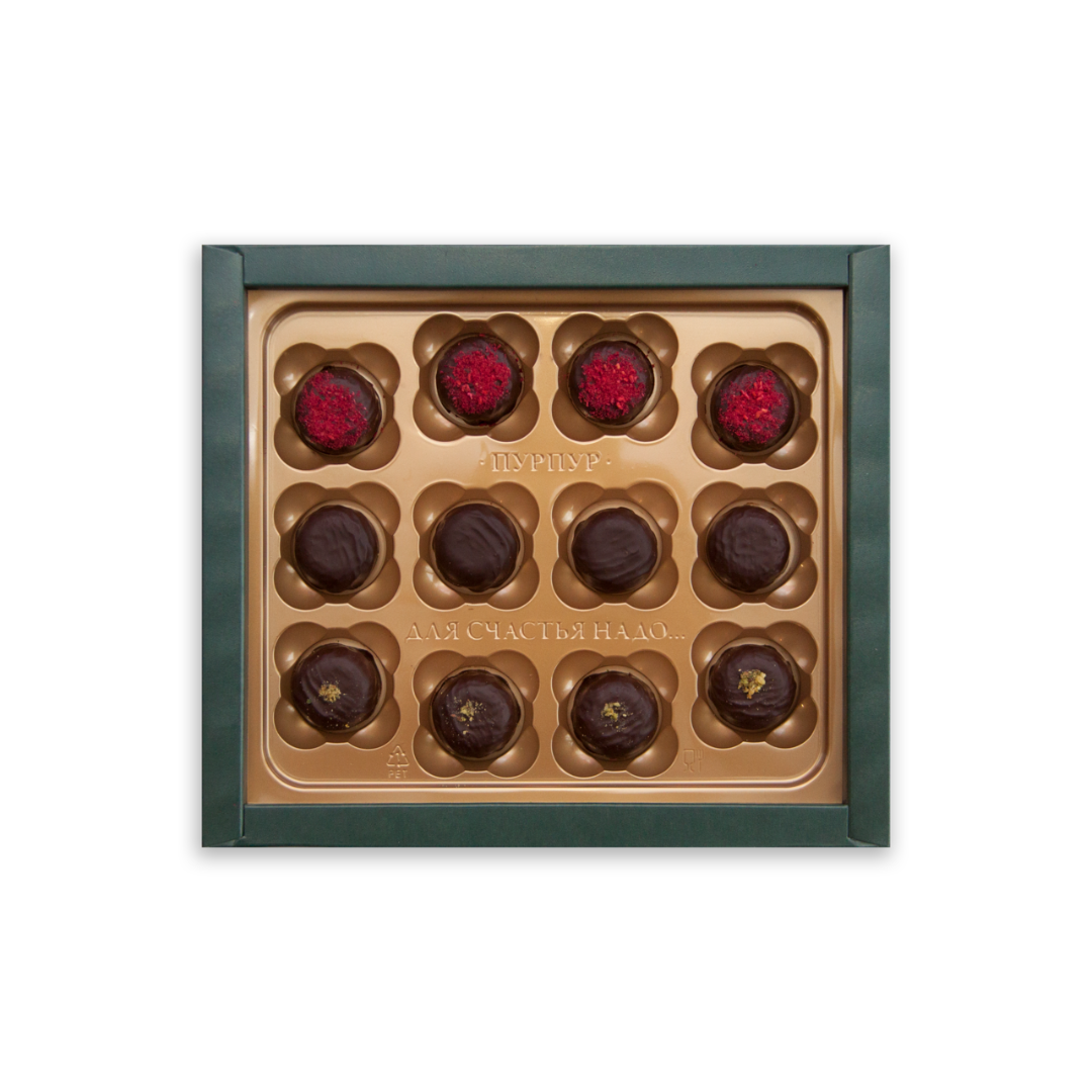 Артикул: 57384Молочный трюфель с малиной и мармеладными каплями в темном шоколаде