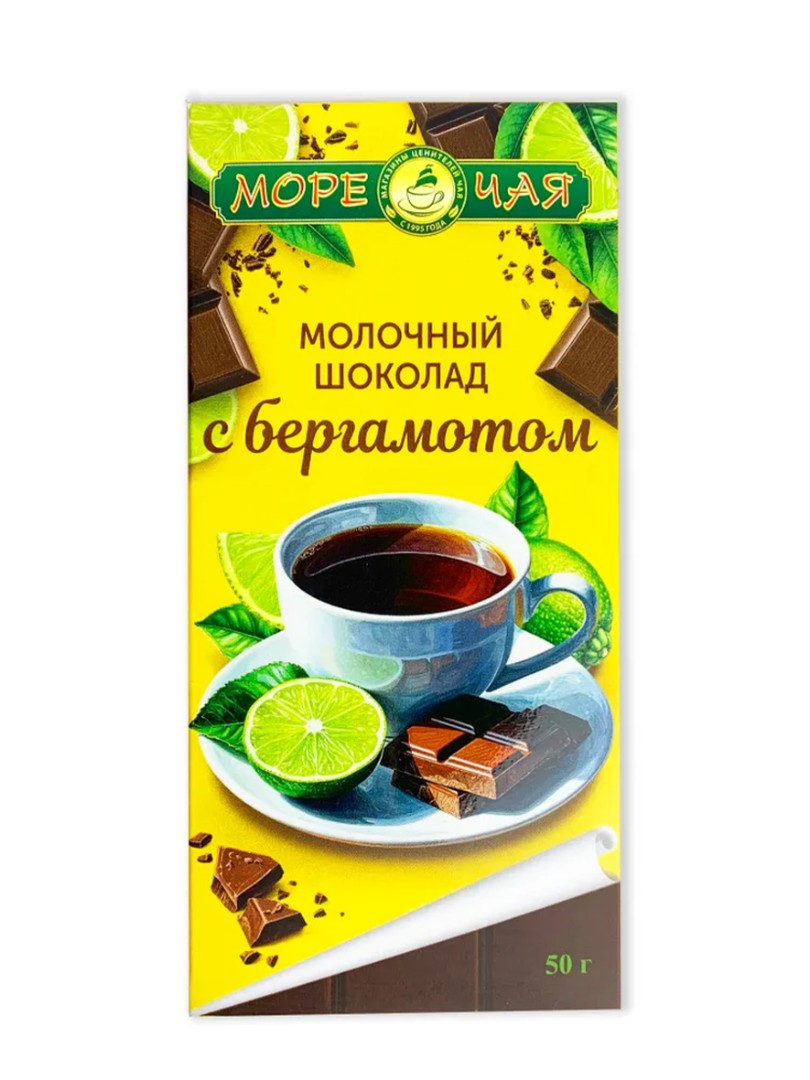 Шоколад молочный 35% с бергамотом - "Море Чая", картон, Россия, 50 гр.