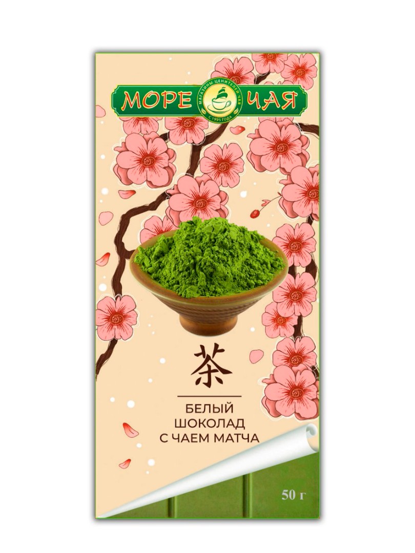 Шоколад белый с чаем Матча - "Море Чая", картон, Россия, 50 гр.
