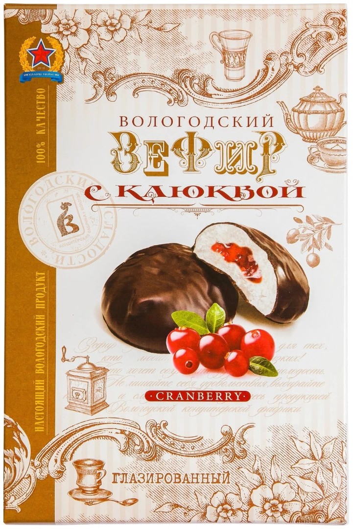Зефир "Вологодский", с клюквой, в картонной коробке, 250 гр.