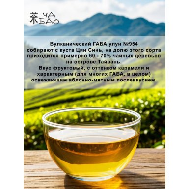 Чайное сырьё Вулканическиого ГАБА улуна №954 собирают с того же самого сорта куста, который культивируется и на острове Тайвань: Цин Синь (на долю которого приходится примерно 60 - 70% чайных деревьев на Тайвань).