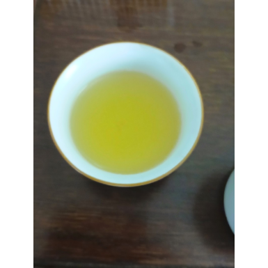 Вкус раскрывается неспешно: при первом (рабочем) заваривании даёт цветочную гамму (орхидеи и лилии), вкус не слишком насыщенный, с едва уловимой карамельной ноткой в послевкусии.