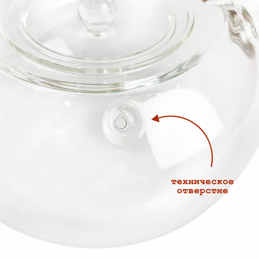 - Состав: стеклянный чайник с крышкой и стеклянной ручкой