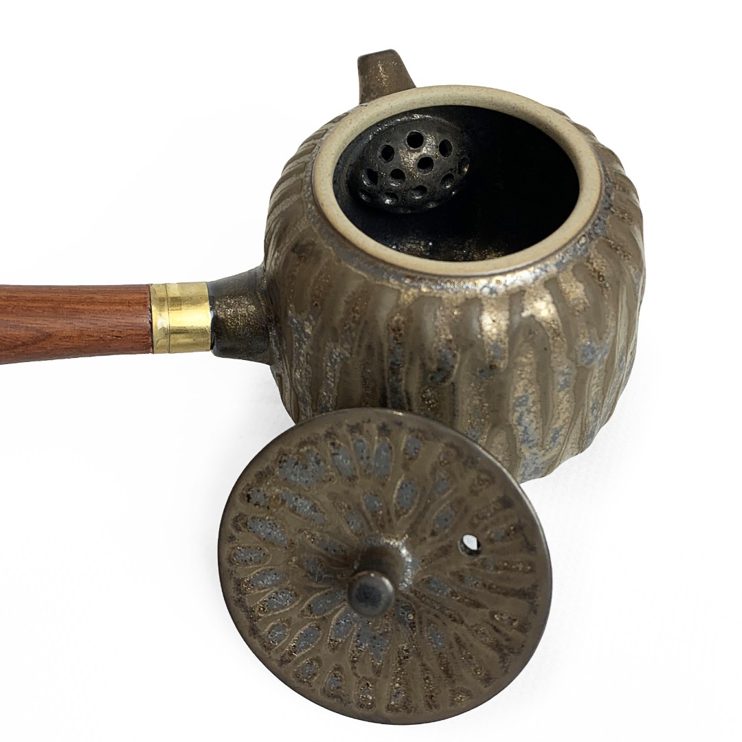 - Состав: керамический чайник с боковой ручкой и крышкой