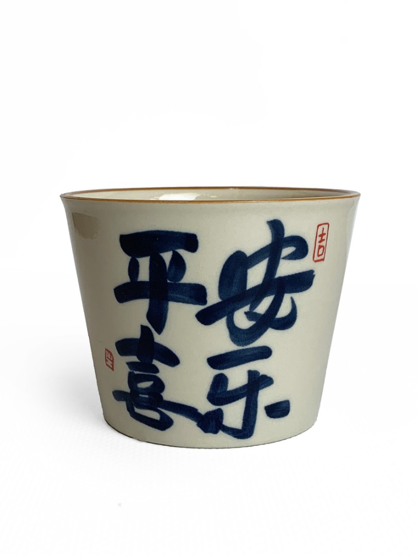 Артикул: 57186Это не просто чашка, на её поверхности изображены иероглифы «平安喜乐» (píng ān xǐ lè), что в переводе с китайского означает «мир и радость» или «мира и радости».