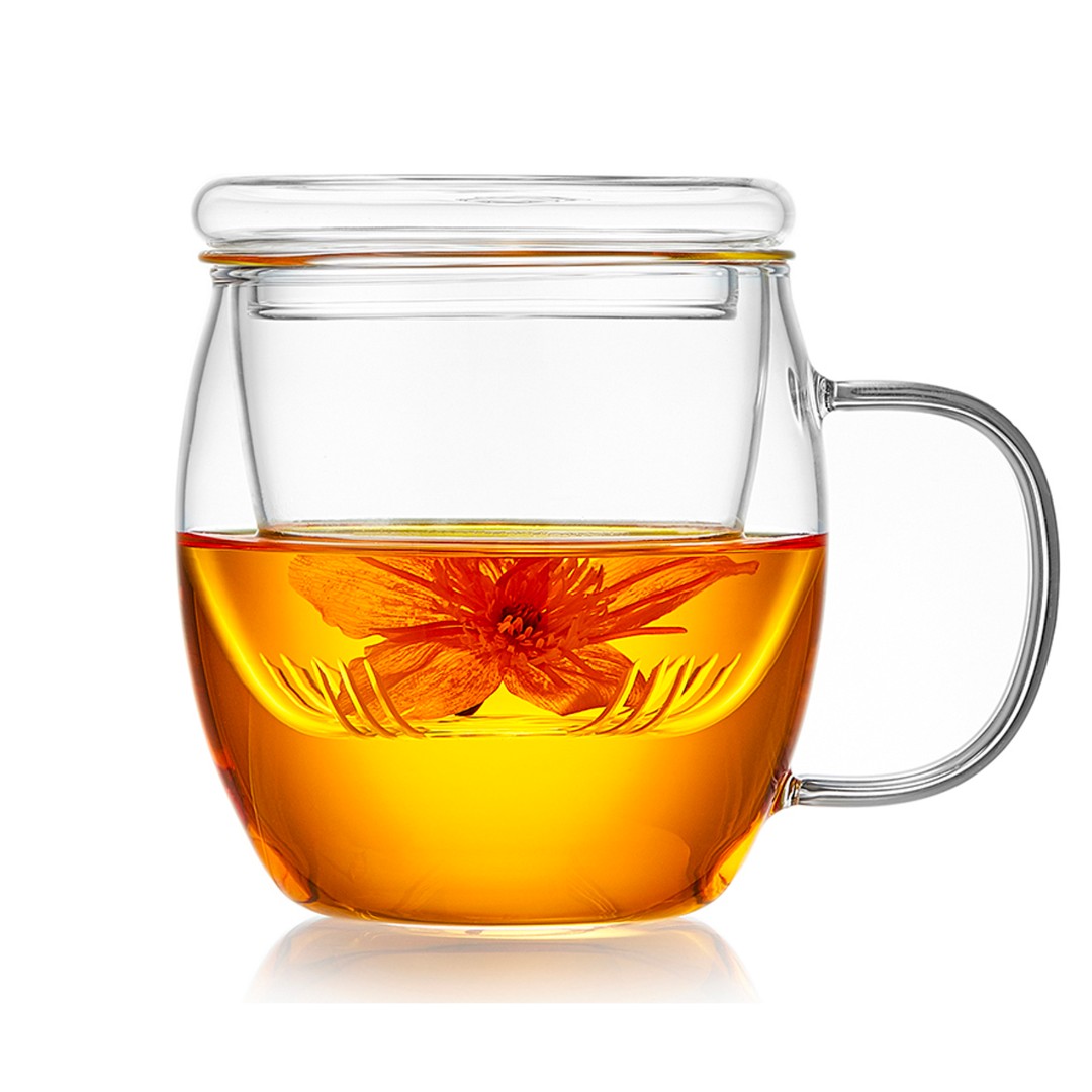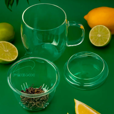 В комплекте с кружкой идут крышка и ситечко, что позволяет наслаждаться процессом заваривания чая на рабочем месте или дома.