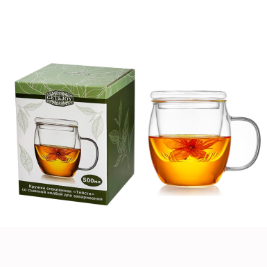 Кружка с заварочной колбой и крышкой - Тейсти (6827), 500 мл., стекло