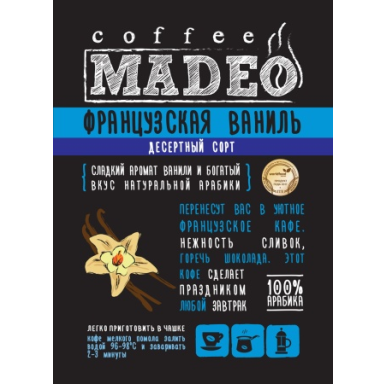 Кофе ТМ "Мадео" - Французская ваниль, 100% арабика, в зернах, 500 гр.