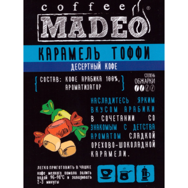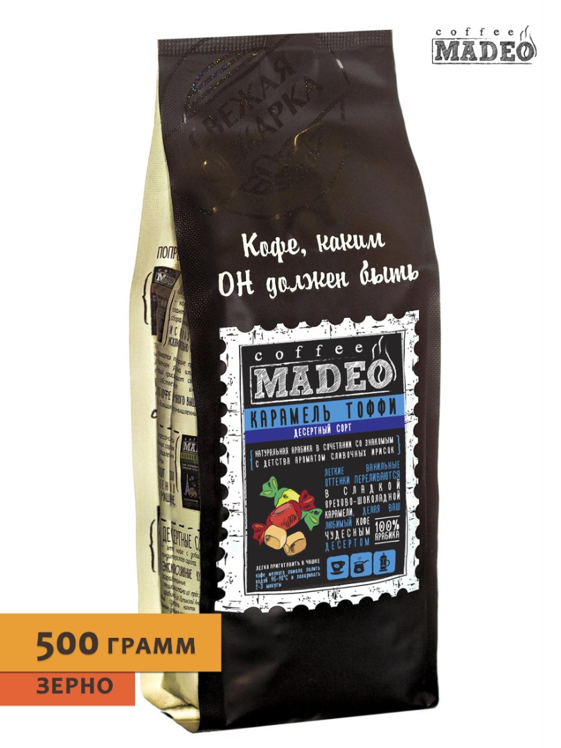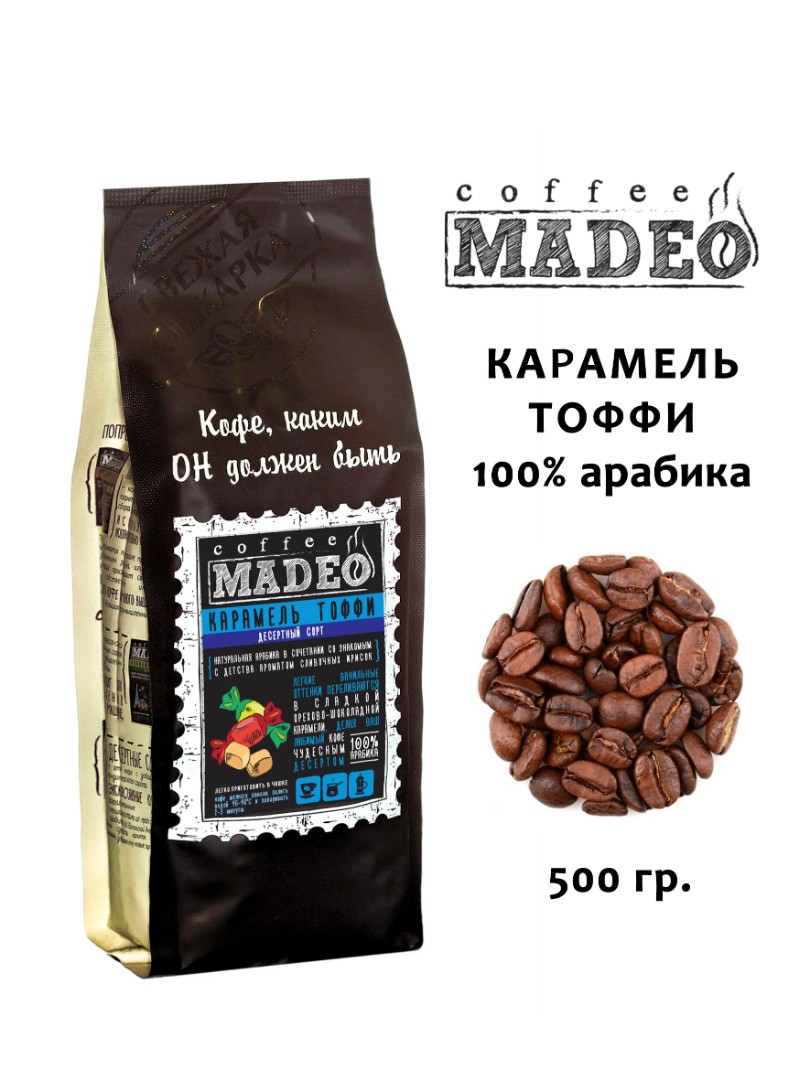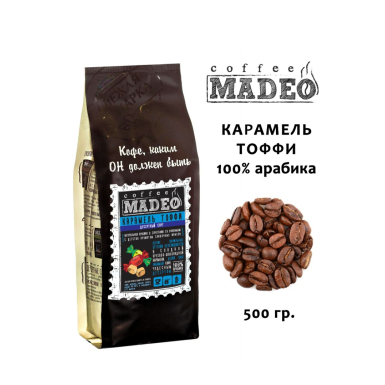 Кофе ТМ "Мадео" - Карамель Тоффи, 100% арабика, в зернах, 500 гр.