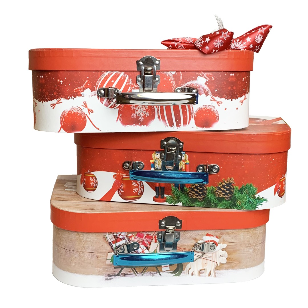 Сундучки выполнены в одинаковой цветовой гамме, но немного отличают рисунком на крышке и расположением декоративных элементов. Состав подарка в любом варианте одинаковый.