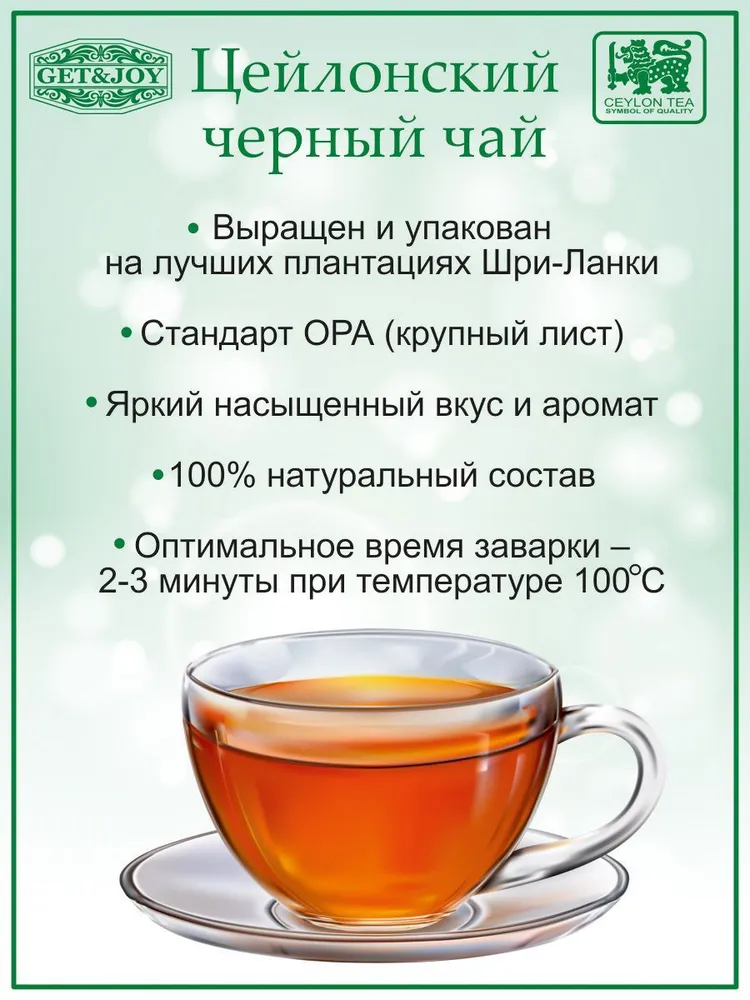 Состав: 100% цейлонский крупнолистовой чёрный чай, 75 гр.