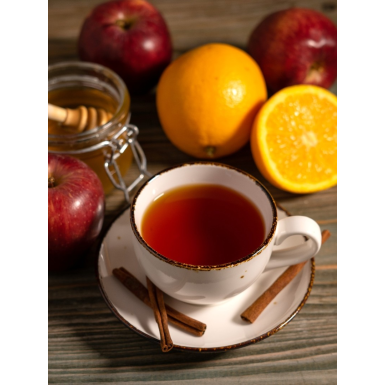 - Состав: 100% цейлонский черный крупнолистовой чай, яблоко, корица, кардамон, кусочки апельсина, календула, ароматизатор.