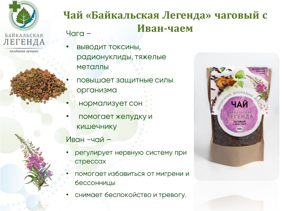 - Состав: чага, листья иван-чая
